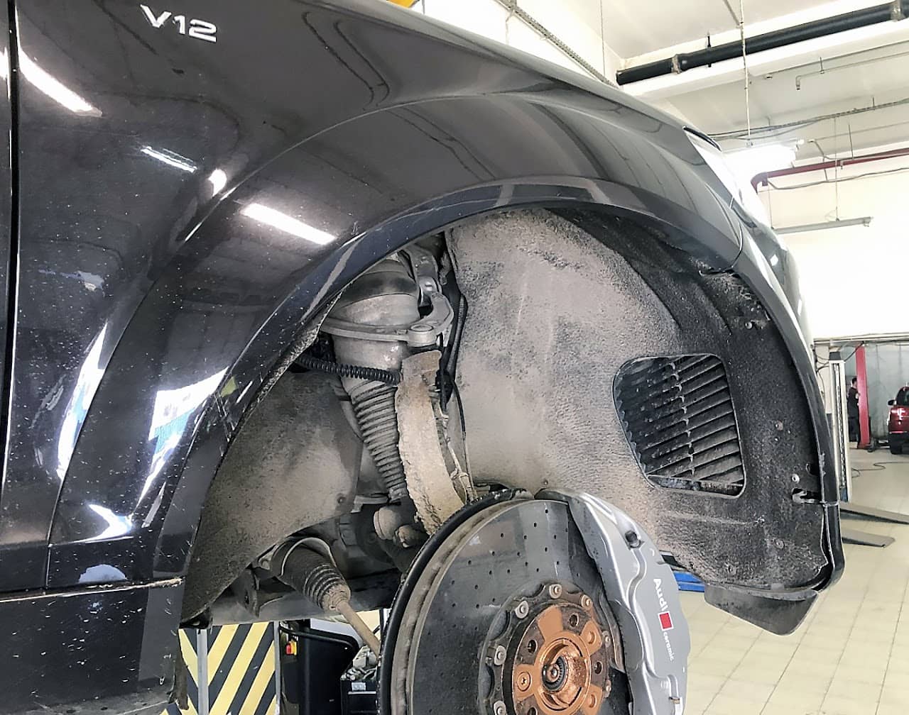 Замена тормозных колодок на Ауди является основной периодической операцией при обслуживании тормозной системы Audi. Накладки колодок работают под высокой нагрузкой и при высоких температурах. При снижении толщины тормозной накладки Ауди, тепловая энергия передается на основание тормозных колодок Ауди, а от него на исполнительные механизмы, перегревая тормозные суппорты Audi и тормозную жидкость в них. Это приводит к потере эффективности торможения, перегреву тормозных дисков Ауди и преждевременному износу элементов тормозной системы. Исправность и надежность тормозной системы Audi непосредственно влияет на безопасность. Стоимость замены тормозных колодок на Audi начинается от 1200р. Для замены задних тормозных колодок Ауди требуется специальное программное обеспечение.