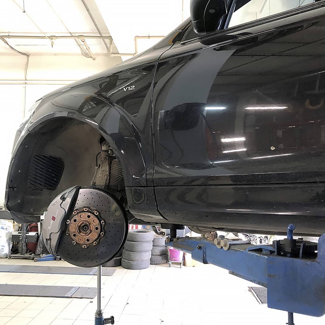 Замена тормозных колодок на Ауди является основной периодической операцией при обслуживании тормозной системы Audi. Накладки колодок работают под высокой нагрузкой и при высоких температурах. При снижении толщины тормозной накладки Ауди, тепловая энергия передается на основание тормозных колодок Ауди, а от него на исполнительные механизмы, перегревая тормозные суппорты Audi и тормозную жидкость в них. Это приводит к потере эффективности торможения, перегреву тормозных дисков Ауди и преждевременному износу элементов тормозной системы. Исправность и надежность тормозной системы Audi непосредственно влияет на безопасность. Стоимость замены тормозных колодок на Audi начинается от 1200р. Для замены задних тормозных колодок Ауди требуется специальное программное обеспечение.